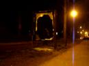 Description: explosivos choques con un anuncio publicitario para limpiar el resto de vidrrio roto que le quedaba. Usando la cabeza |